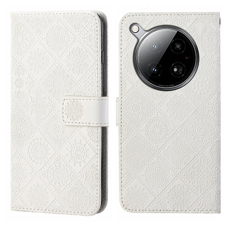 Funda de Cuero con Patrón en Relieve Estilo Étnico para Infinix Zero 40 4G (Blanca)