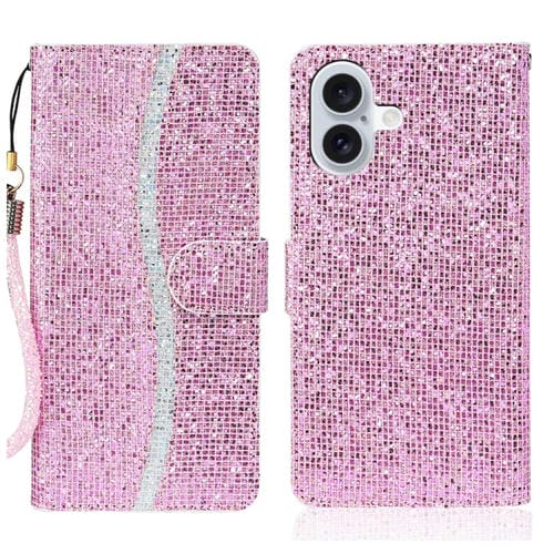 Funda de Cuero con Purpurina para iPhone 16 Plus (Rosa)