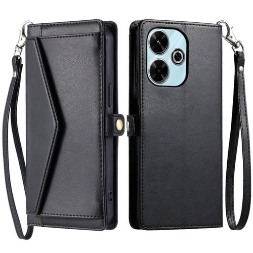 Funda de Cuero con Ranura para Múltiples Tarjetas y Cordón para Redmi 13 4G (Negro)