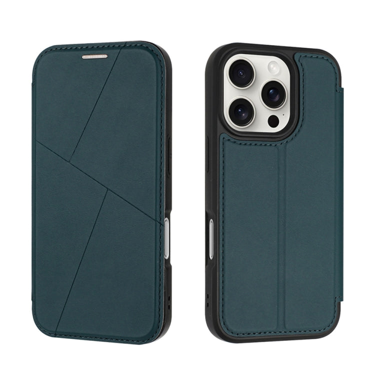 Funda de Cuero para iPhone 16 Pro con Ranuras para Tarjetas RFID y Carcasa Magnética (Verde)