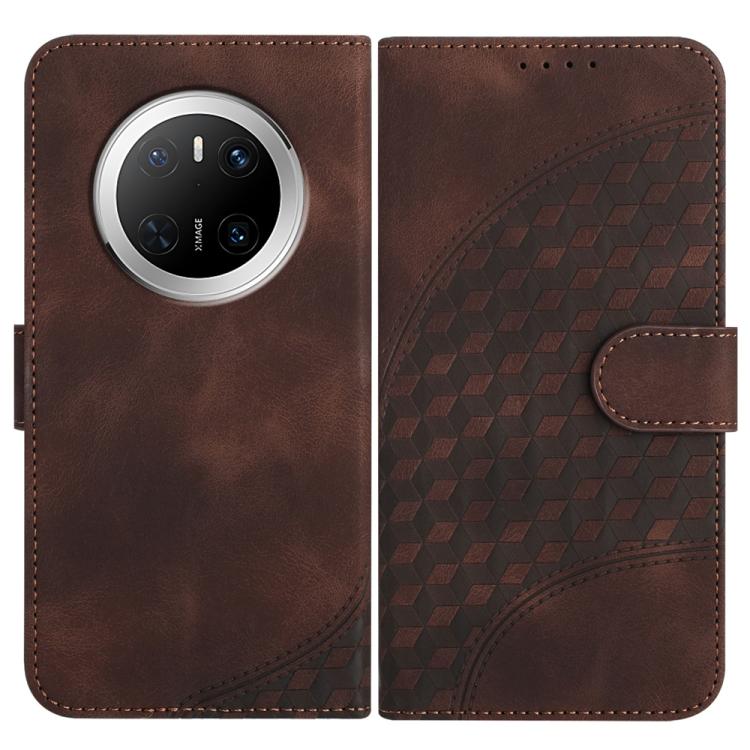 Funda de Cuero con Relieve de Cabeza de Elefante para Huawei Mate 70 con Cordón (Café)
