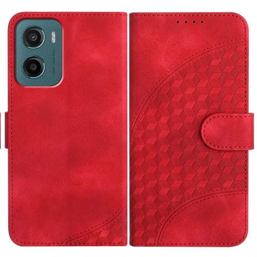 Funda de Cuero con Relieve Cabeza de Elefante para Motorola Moto G05 con Cordón (Rojo)