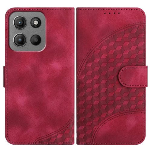 Funda de Cuero con Relieve Cabeza de Elefante para Motorola Moto G15 con Cordón (Rosa Rojo)