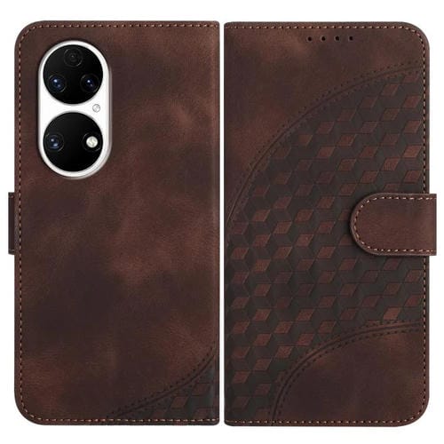 Funda de Cuero con Relieve de Cabeza de Elefante para Huawei P50 con Cordón (Café)
