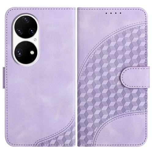 Funda de Cuero Huawei P50 Pro con Relieve de Cabeza de Elefante y Cordón (Morado Claro)