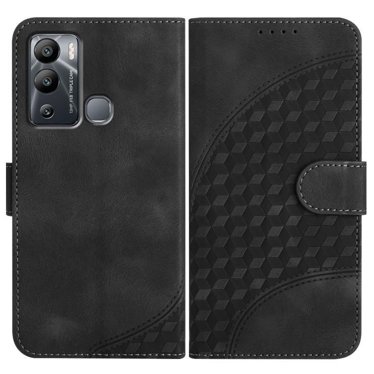 Funda de Cuero con Relieve Cabeza de Elefante para Infinix Hot 12I con Cordón (Negro)