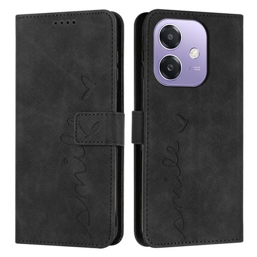 Funda de Cuero con Relieve de Corazón para Oppo A3X 5G (Negra)