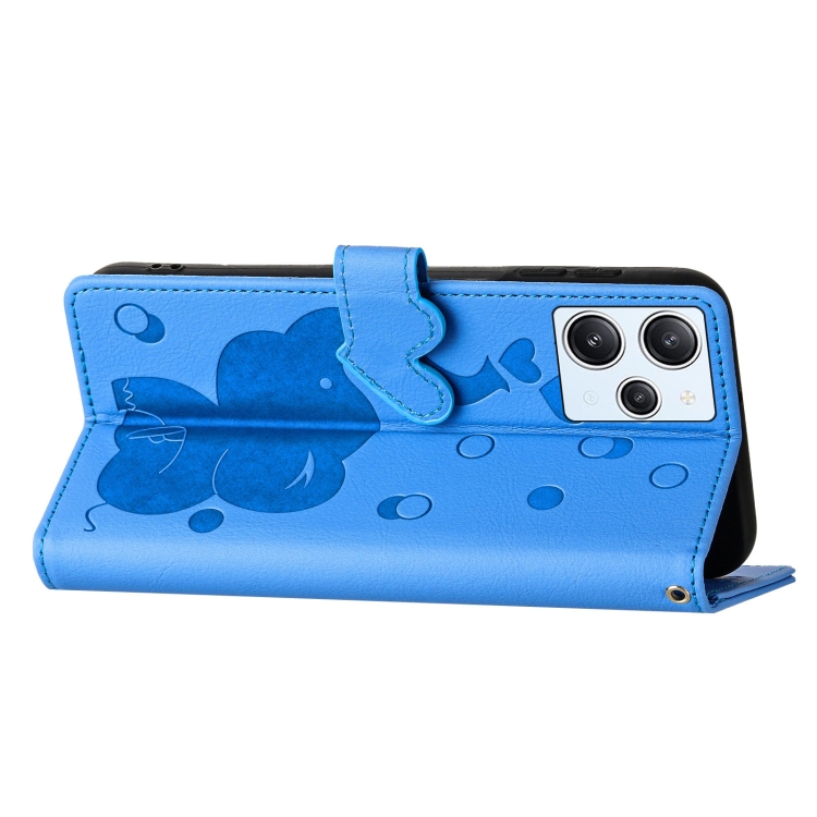 Funda de Cuero con Relieve de Elefante de Dibujos Animados para Redmi 12 4G/5G (Azul)