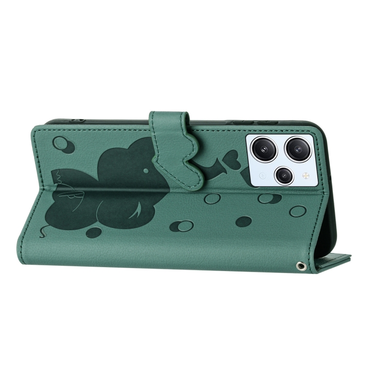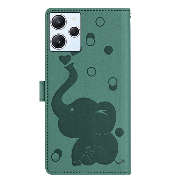 Funda de Cuero con Relieve de Elefante de Dibujos Animados para Redmi 12 4G/5G (Verde)