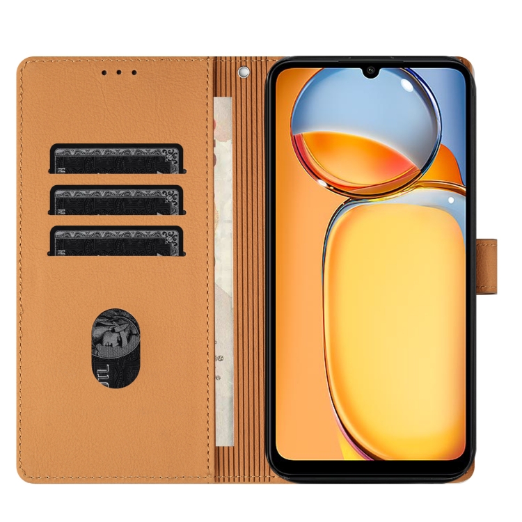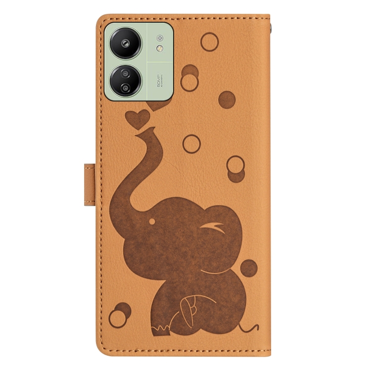 Funda de Cuero con Relieve de Elefante de Dibujos Animados para Redmi 13C 4G (Amarillo)
