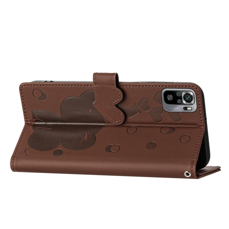 Funda de Cuero con Relieve de Elefante de Dibujos Animados para Redmi Note 10/Note 10S (Marrón)