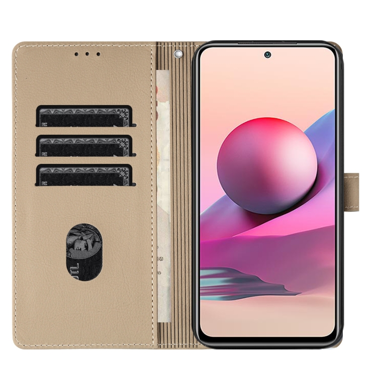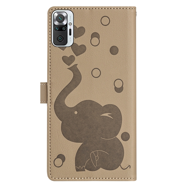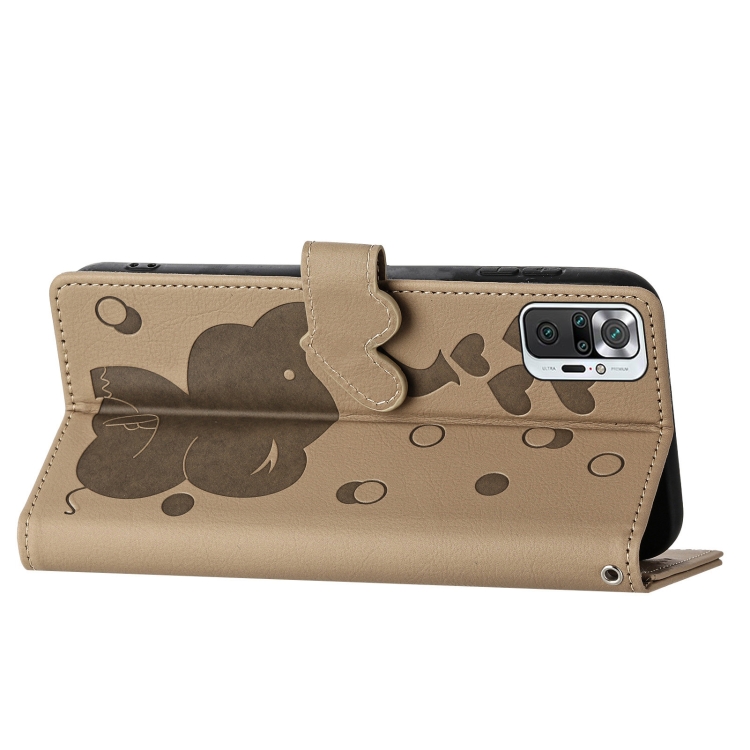Funda de Cuero con Relieve de Elefante de Dibujos Animados para Redmi Note 10 Pro (Caqui)