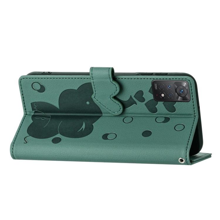 Funda de Cuero con Relieve de Elefante de Dibujos Animados para Redmi Note 11 Pro 4G/5G (Verde)