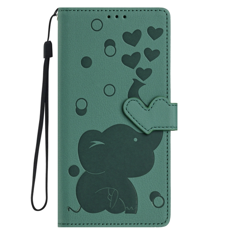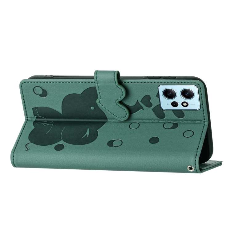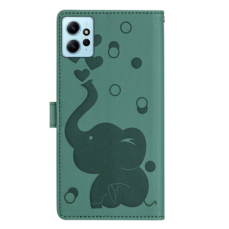 Funda de Cuero con Relieve de Elefante de Dibujos Animados para Redmi Note 12 4G (Verde)