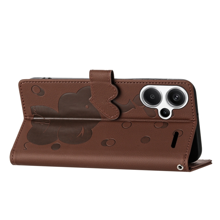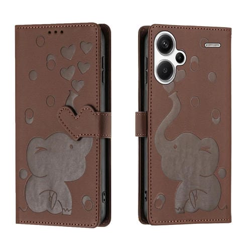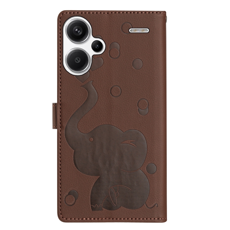 Funda de Cuero con Relieve de Elefante de Dibujos Animados para Redmi Note 13 Pro+ (Marrón)