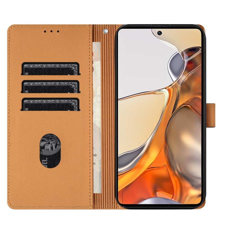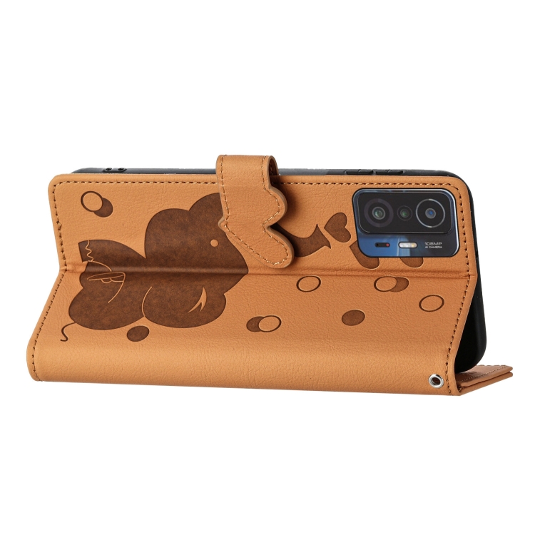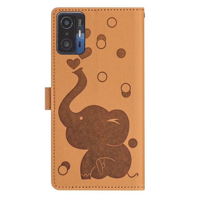 Funda de Cuero con Relieve de Elefante de Dibujos Animados para Xiaomi 11T/11T Pro (Amarillo)