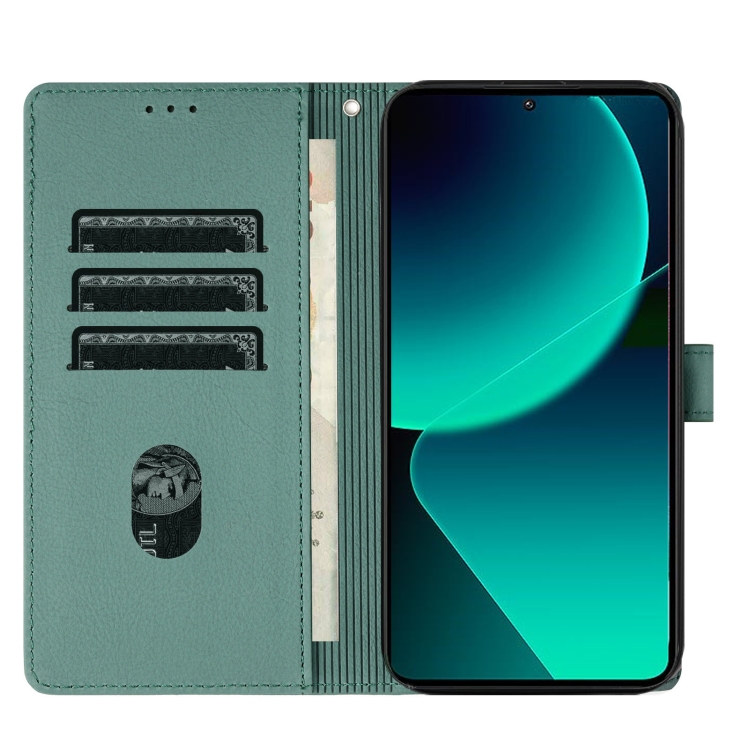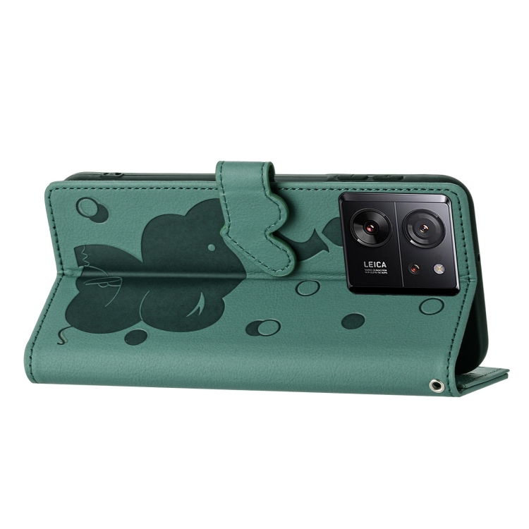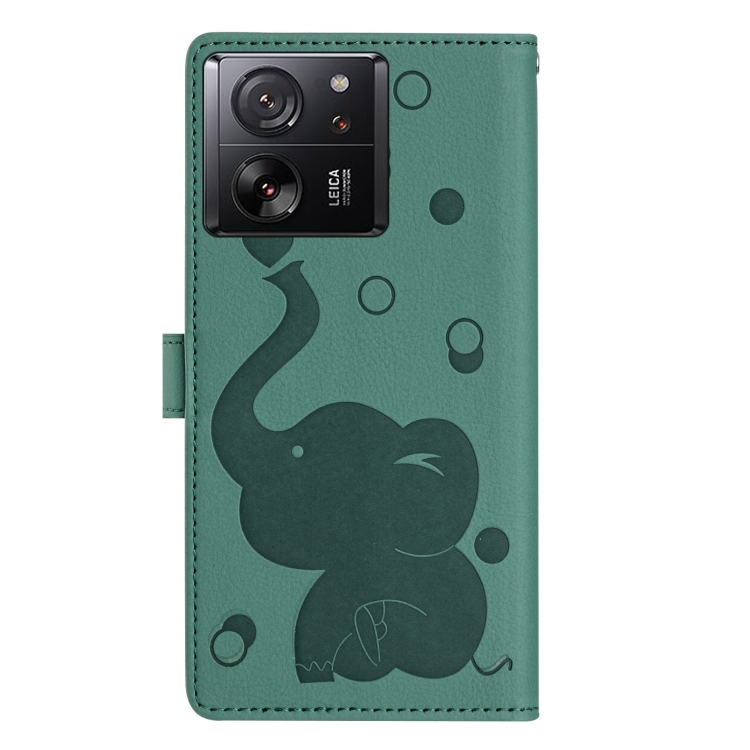 Funda de Cuero con Relieve de Elefante de Dibujos Animados para Xiaomi 13T/13T Pro (Verde)