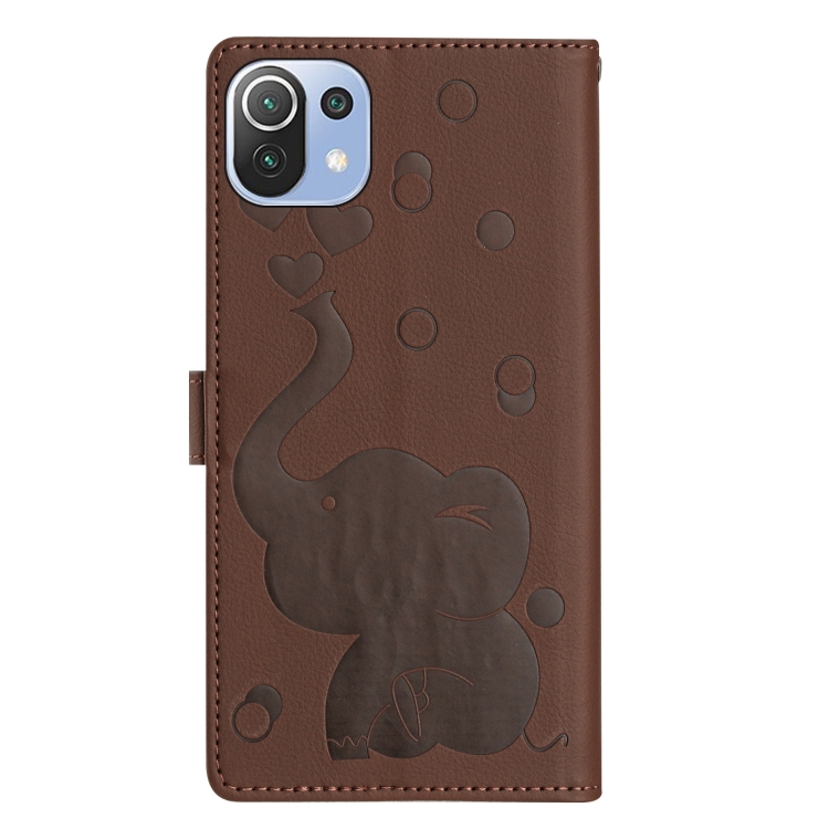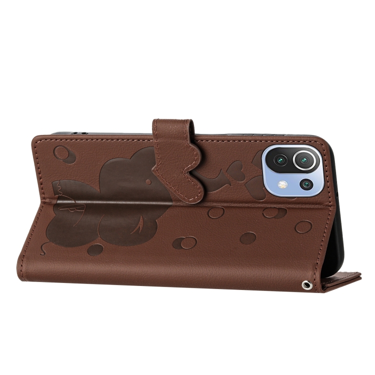 Funda de Cuero con Relieve de Elefante de Dibujos Animados para Xiaomi Mi 11 Lite (Marrón)