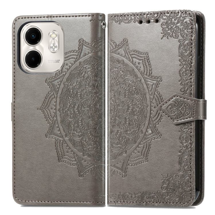Funda de Cuero con Relieve Flor de Mandala para Infinix Smart 9 (Gris)