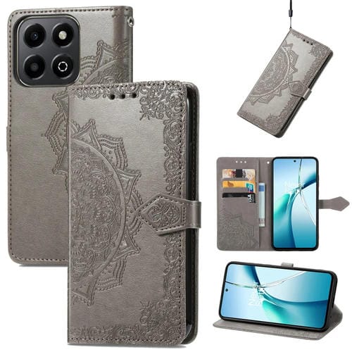 Funda de Cuero con Relieve Flor de Mandala para Honor 200 (Gris)