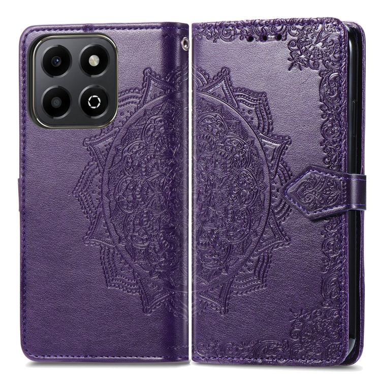 Funda de Cuero con Relieve Flor de Mandala para Teléfono Honor 200 (Morado)