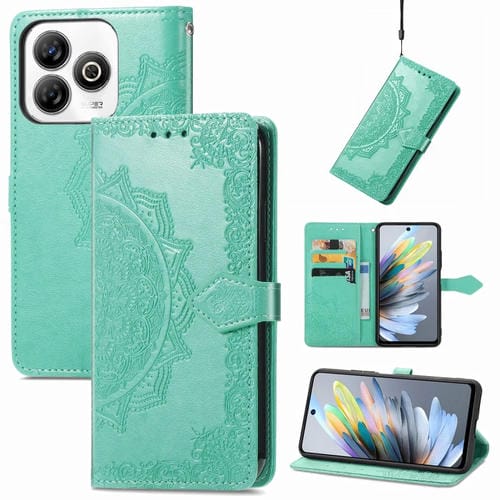 Funda de Cuero con Relieve Flor de Mandala para ZTE Blade A75 4G (Verde)