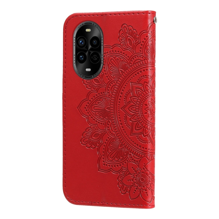 Funda de Cuero con Relieve de Flores de Siete Pétalos para Huawei Nova 13 Pro (Rojo)