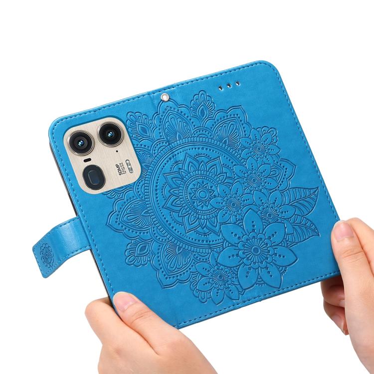 Funda de Cuero con Relieve de Flores de Siete Pétalos para Motorola Edge 50 Ultra / X50 Ultra (Azul)