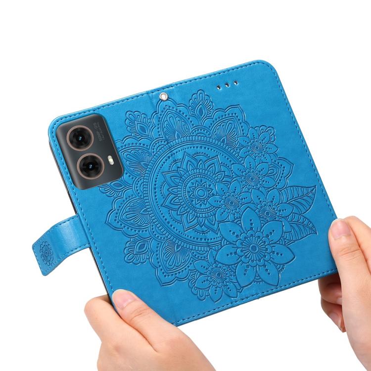 Funda de Cuero con Relieve de Flores de Siete Pétalos para Motorola Moto G85/S50 Neo (Azul)