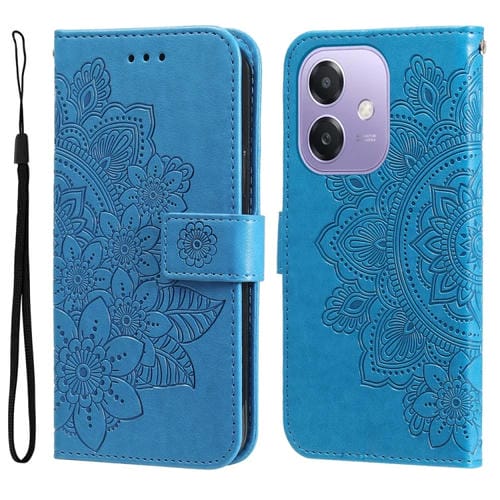 Funda de Cuero con Relieve de Flores de Siete Pétalos para Oppo A3X 4G/A3X 5G (Azul)