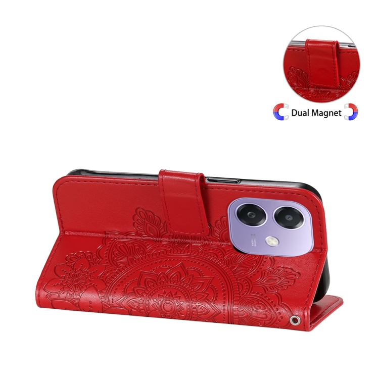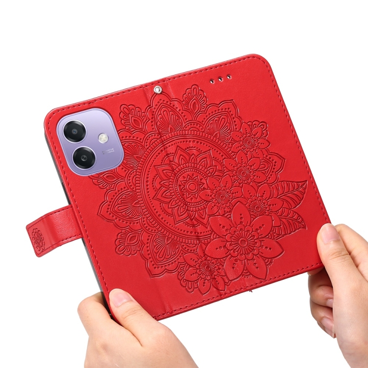 Funda de Cuero con Relieve de Flores de Siete Pétalos para Oppo A3X 4G/A3X 5G (Rojo)