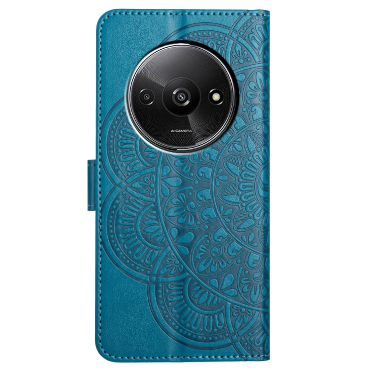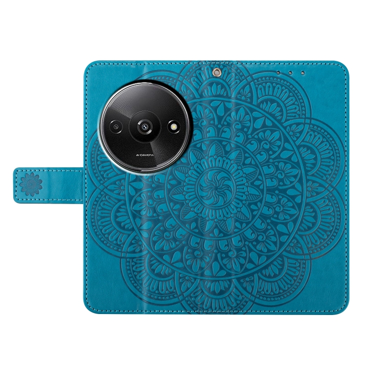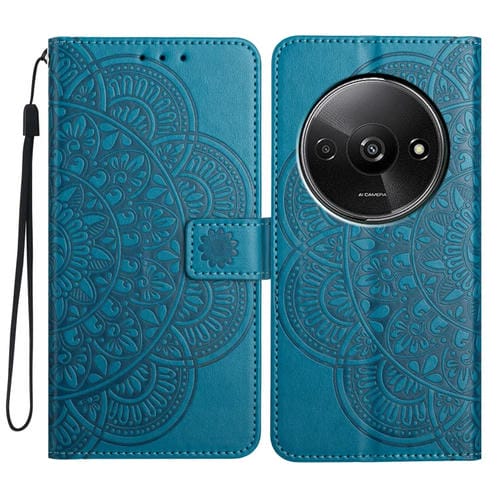 Funda de Cuero con Relieve Floral para Redmi A3 (Azul)