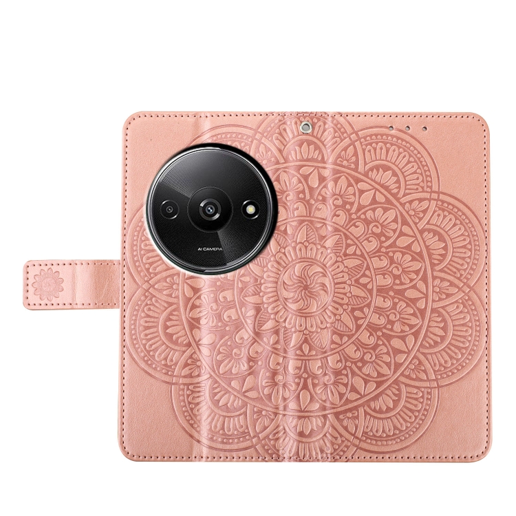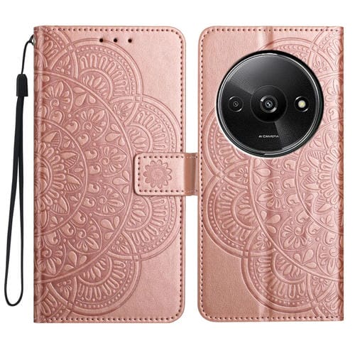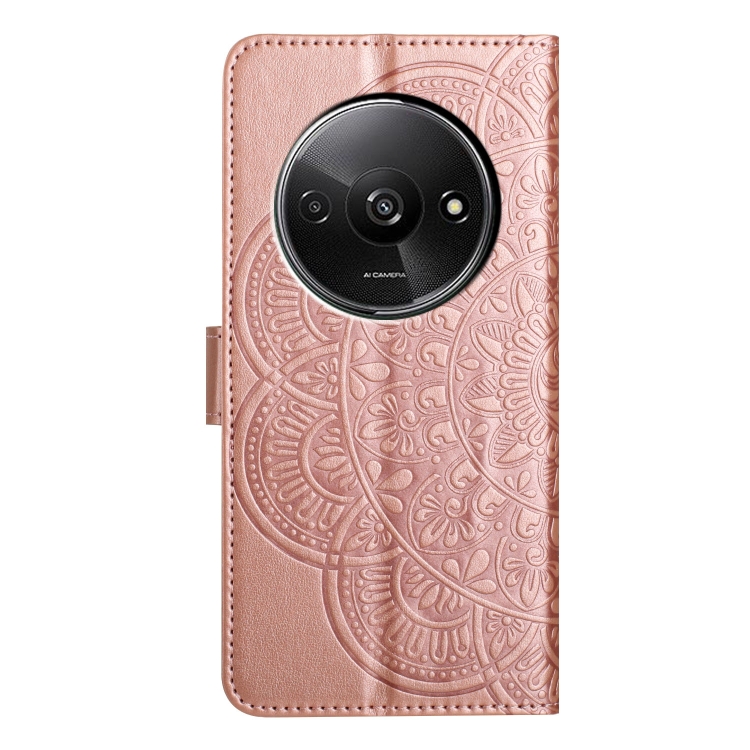 Funda de Cuero con Relieve Floral para Redmi A3 (Oro Rosa)