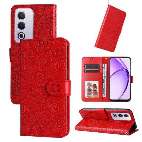 Funda de Cuero con Relieve de Girasol para Oppo A3 Pro 5G Global/India (Rojo)
