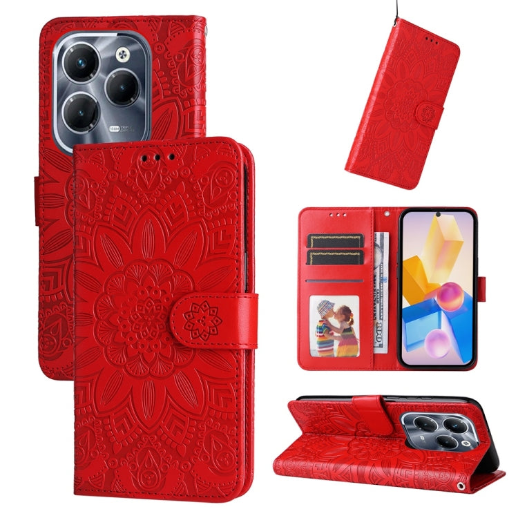 Funda de Cuero con Relieve de Girasol para Infinix Hot 40 y Hot 40 Pro (Rojo)