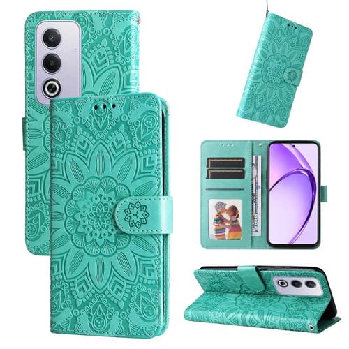 Funda de Cuero con Relieve de Girasol para Teléfono Oppo A3 Pro 5G Global/India (Verde)