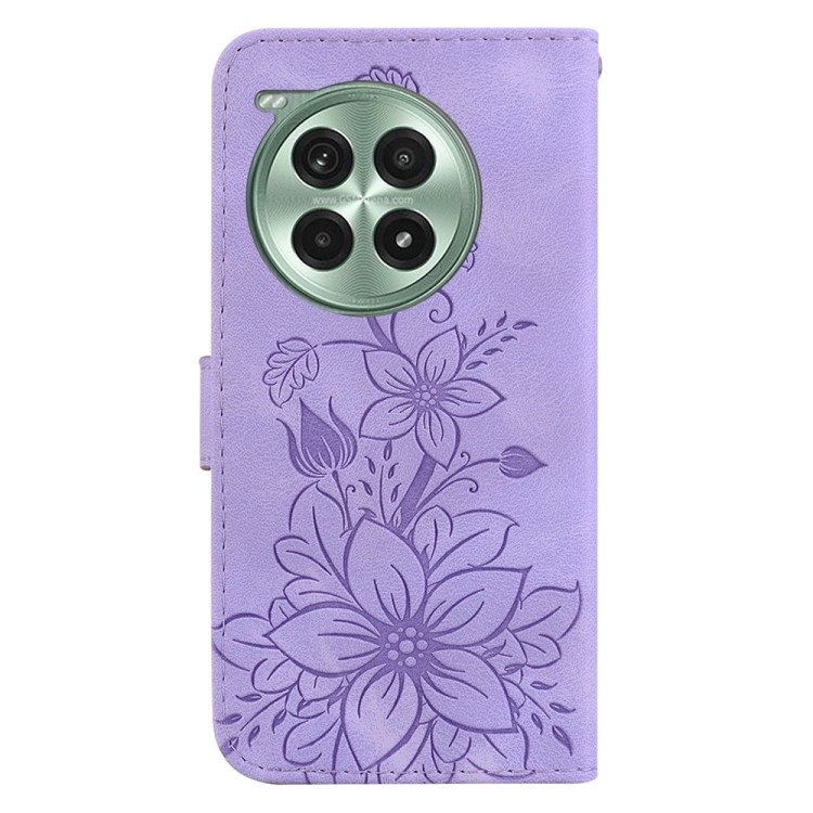 Funda de Cuero con Relieve de Lirios para OnePlus Ace 3 Pro (Morado)