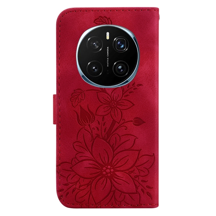 Funda de Cuero con Relieve de Lirio para Honor Magic7 Pro (Roja)