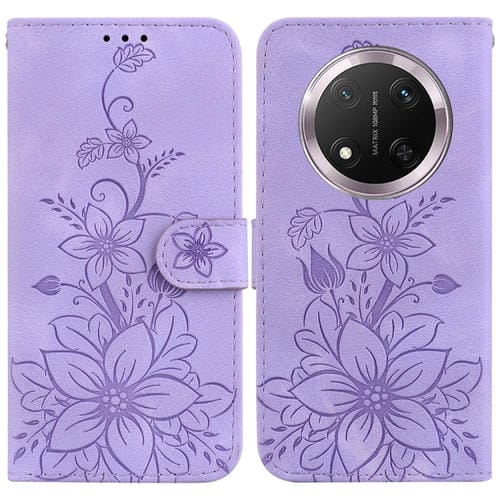 Funda de Piel con Relieve de Lirio para Honor X9C (Morada)