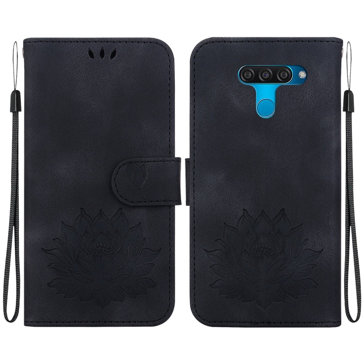 Funda de Cuero con Relieve de Loto para LG K50/Q60 (Negra)