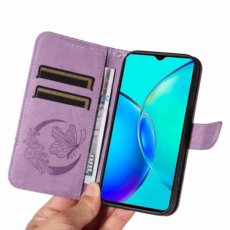 Funda de Cuero con Relieve de Mariposa para Vivo Y27 (Morado)