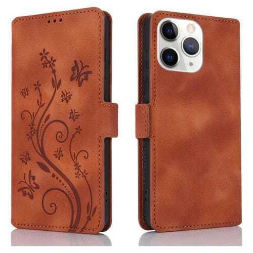 Funda de Cuero iPhone 11 Pro Relieve Mariposa Flor Amor Ensueño (Marrón)