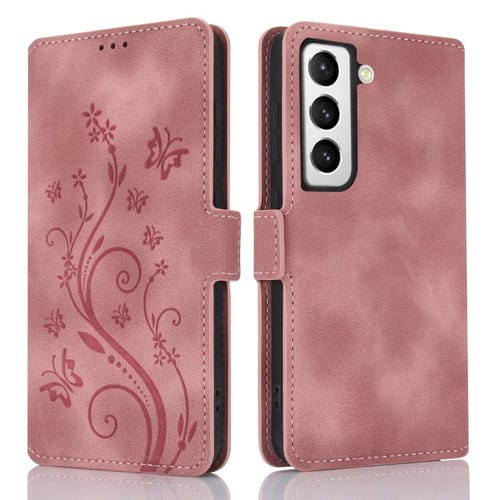 Funda Cuero Samsung Galaxy S21 5G Relieve Mariposa Flor Amor (Oro Rosa)