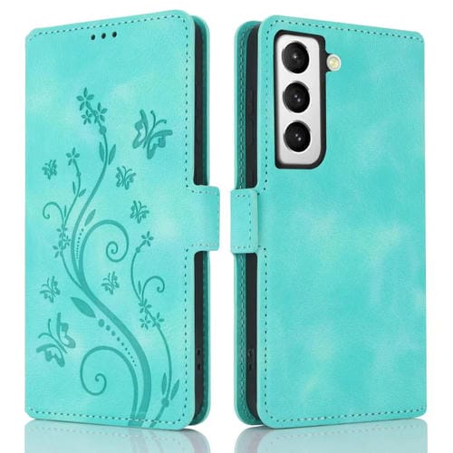 Funda Cuero Samsung Galaxy S21 5G Relieve Mariposa Flor Amor (Verde)