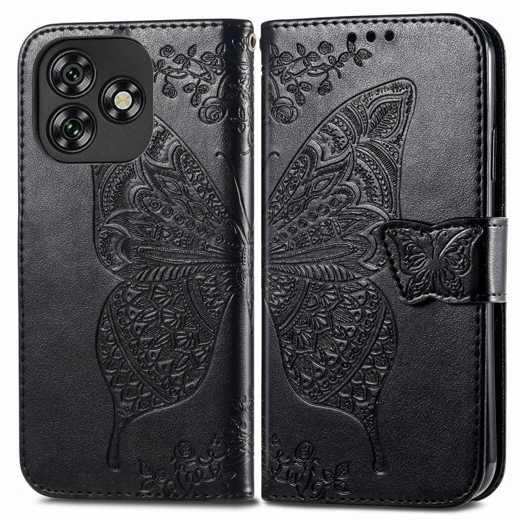 Funda de Cuero con Relieve de Mariposa y Flor para Oukitel C53 (Negro)