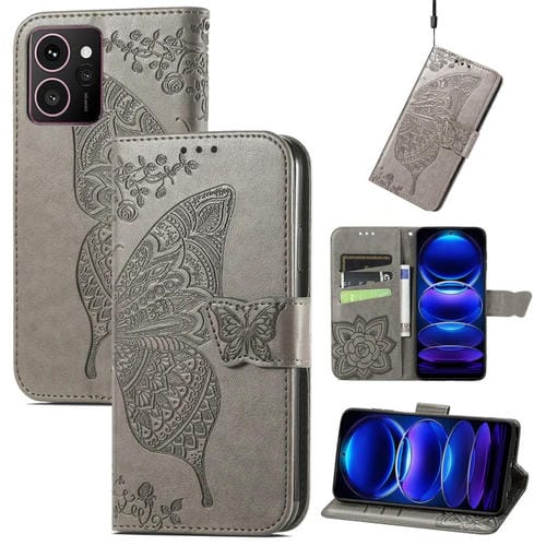 Funda de Cuero para Teléfono HMD Skyline con Relieve Mariposa y Flor (Gris)