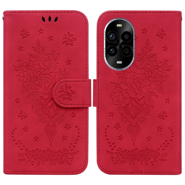 Funda de Cuero con Relieve Mariposa y Rosa para Huawei Nova 13 Pro (Roja)
