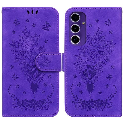 Funda Cuero Samsung Galaxy A16 5G Relieve Mariposa y Rosa (Morado)