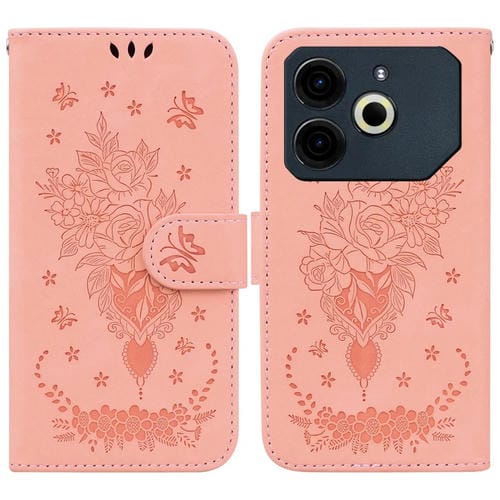 Funda de Cuero con Relieve Mariposa y Rosa para Tecno Pova 6 Neo (Rosa)