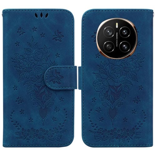 Funda de Cuero para Honor Magic7 con Relieve de Mariposa y Rosa (Azul)